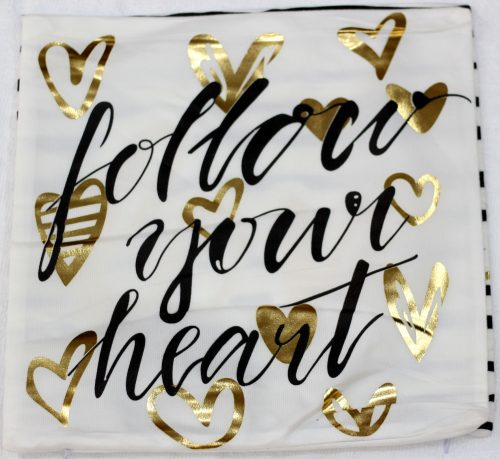 Shiny Leather cushion in White Color and Golden Hearts with Letters Follow your Heart